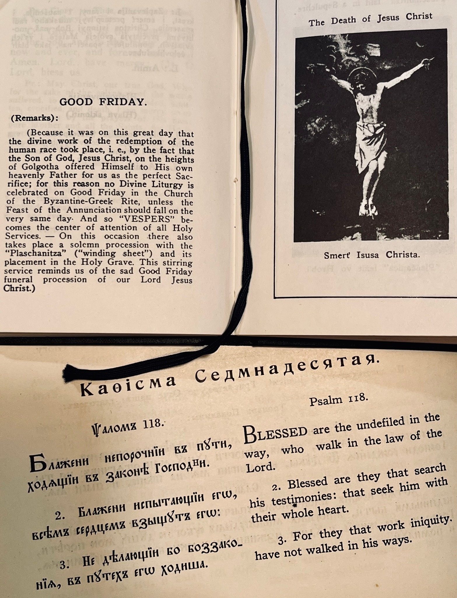 At the evening service of Vespers, the first part of the service (the hymns of Lamp-lighting) recalls to our minds the events of this day: ”All creation is transformed with fear when it beheld you hanging on the Cross, O Christ. The sun was darkened and the foundations of the earth trembled. All creation suffered with the One who created all things. O Lord, who willingly suffered for us, glory to you.”